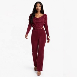 2025 Q25ST315 Europeo Americano transfronterizo moda mujer Casual cintura alta pantalones de pierna ancha conjunto Swing Collar transpirable sólido